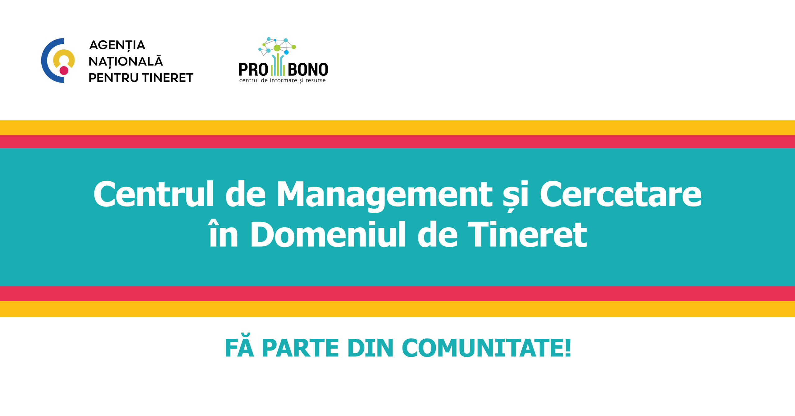 Centrul de Management și Cercetare în Domeniul de Tineret este implementat de Centrul de Informare și Resurse PRO BONO, cu suportul Agenției Naționale pentru Tineret, în cadrul Programului anual de Granturi pentru Organizațiile de Tineret 2023.